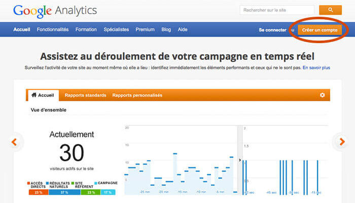 To measure your statistics, Google provides us with a tool: Google Analytics. There are competitors, Google’s is the most used, but you can find Xiti for example. Both are equivalent in the numbers provided and the tools provided, but to access all the data you need a paid account on Xiti, unlike Analytics which is completely free.